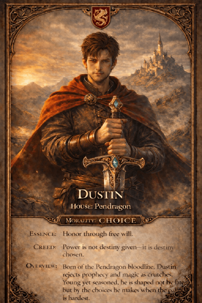 | Dustin | A brave warrior with a strong heart. | Expert in combat and strategy. | Loyal to friends and allies. |