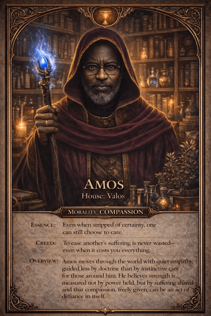 | Amos | A clever inventor with a sharp mind. | Creates innovative gadgets. | Enjoys solving complex problems. |