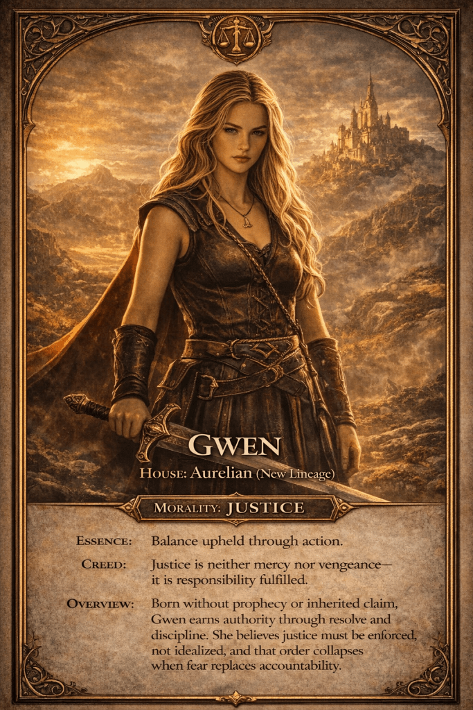 | Gwen | A cheerful bard spreading joy. | Plays multiple instruments. | Uses music to inspire courage. |